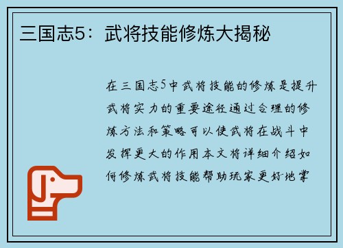 三国志是中国历史上一部著名的战争纪实文献,其中英雄战法是战争胜利的关键之一。在三国志战略版游戏中,强化英雄战法是玩家取得胜利的重要策略之一。本文将从随机的8-20个方面详细阐述如何强化英雄战法,帮助玩家在游戏中取得更好的战略效果。 选择合适的英雄 选择合适的英雄是强化英雄战法的第一步。不同英雄有着不...